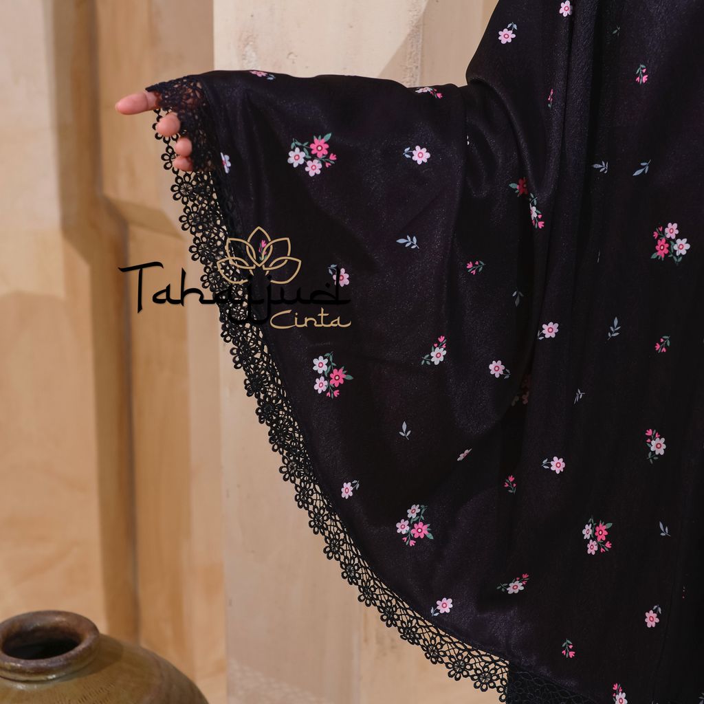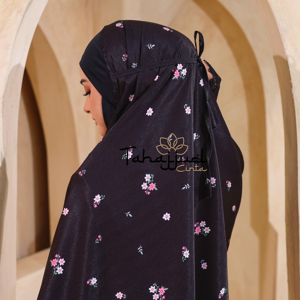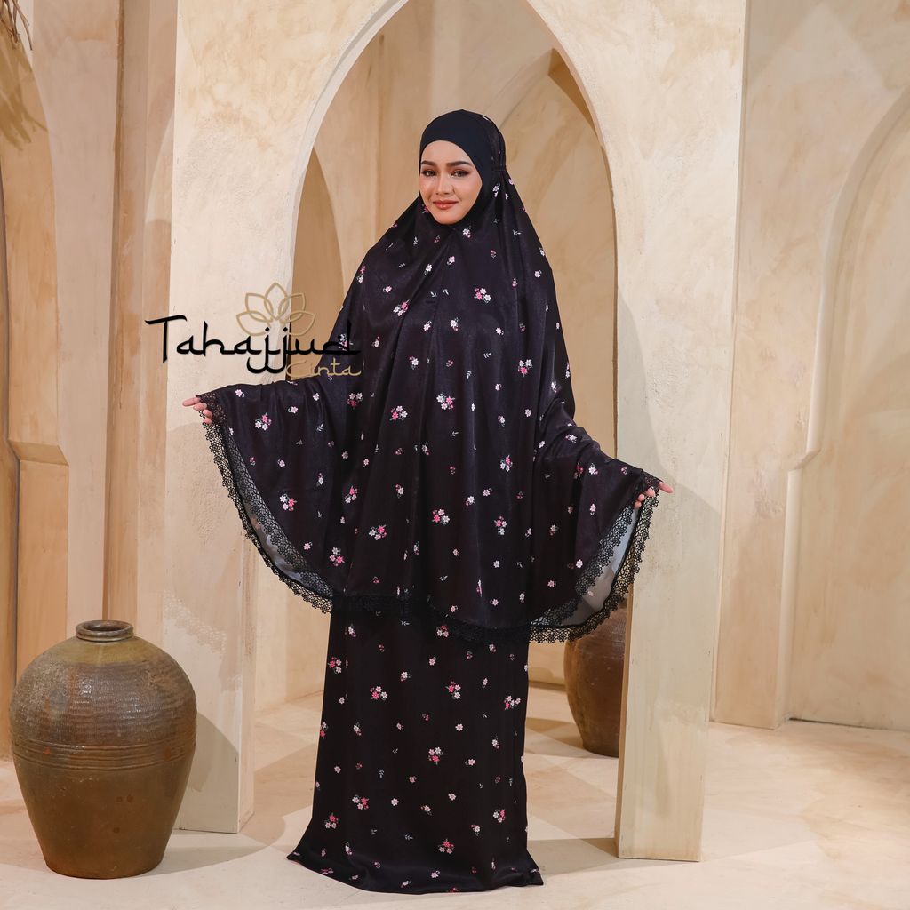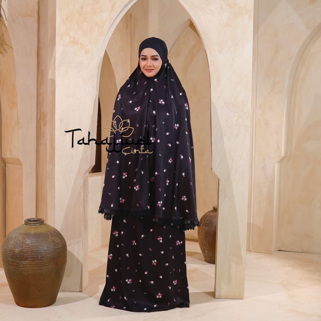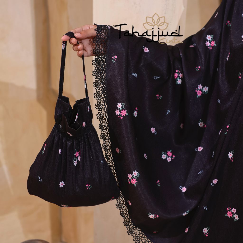 Telekung Daisy Satin + Pouch Beg Black