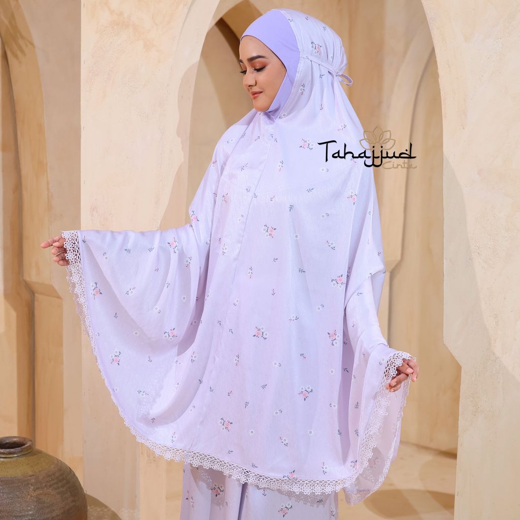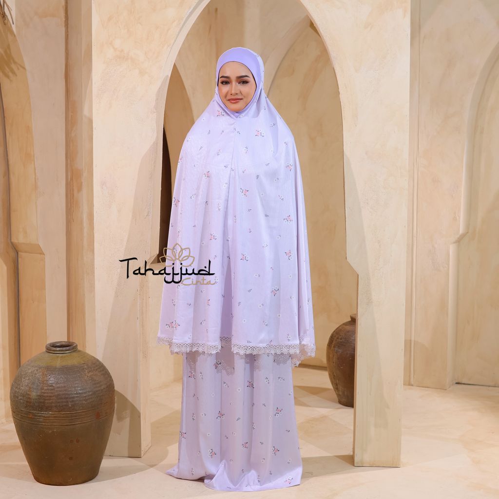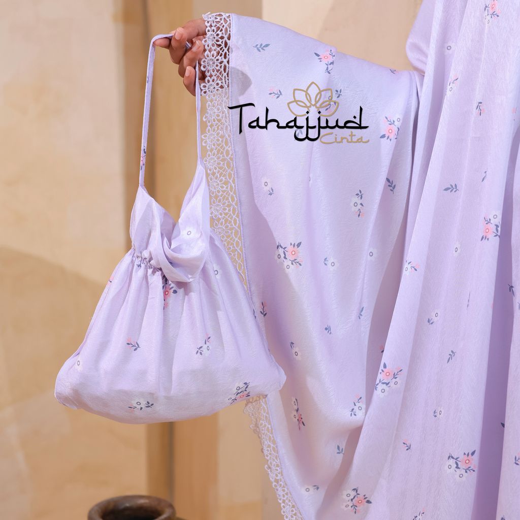 Telekung Daisy Satin + Pouch Beg Lilac